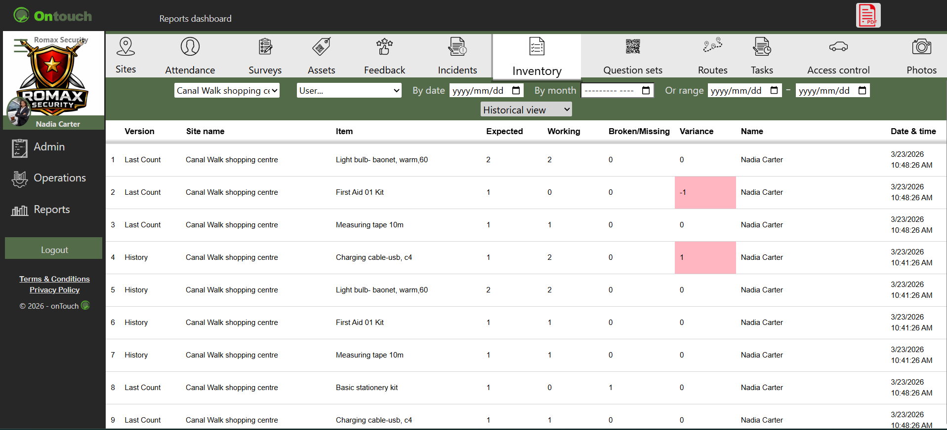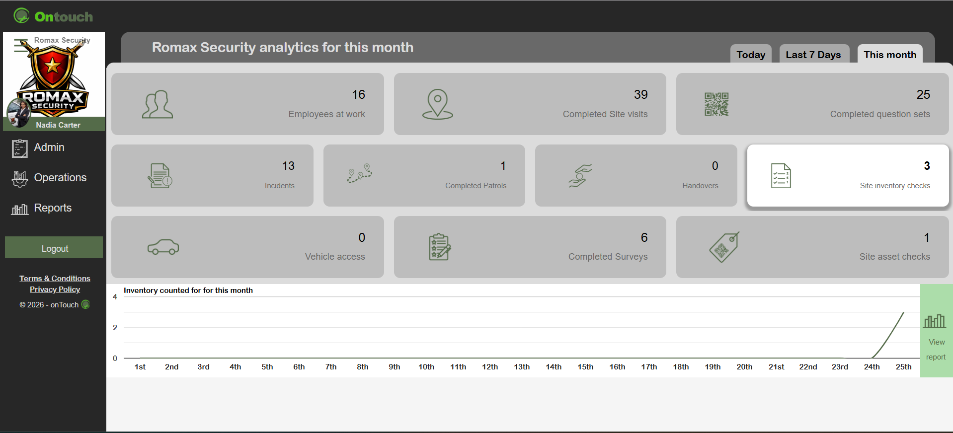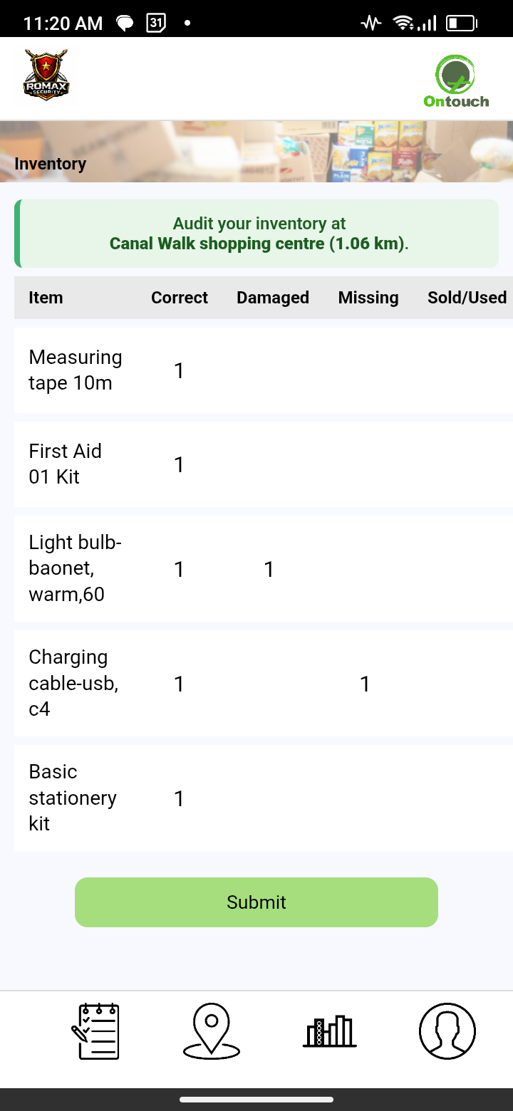 Specific reports for your clients like providing proof of delivery or service can be arranged, contact Ontouch to set up this option. Any faults or incidents like a broken window that takes place can be recorded and will immediately notify you. Deliveries of stock and scheduled services can be easily completed.