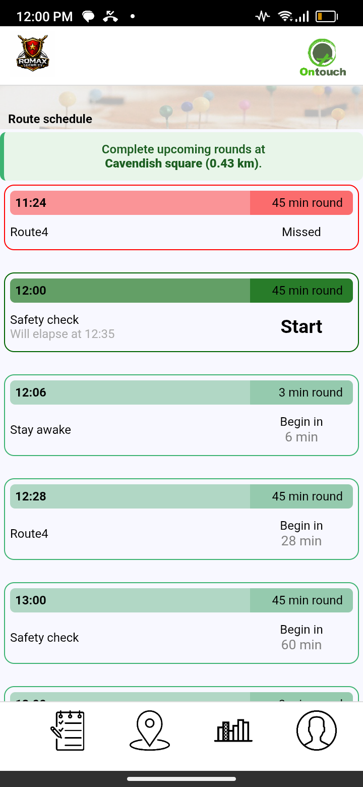 If your company has assigned a route schedule for you, this module will become available once you have clocked onsite.