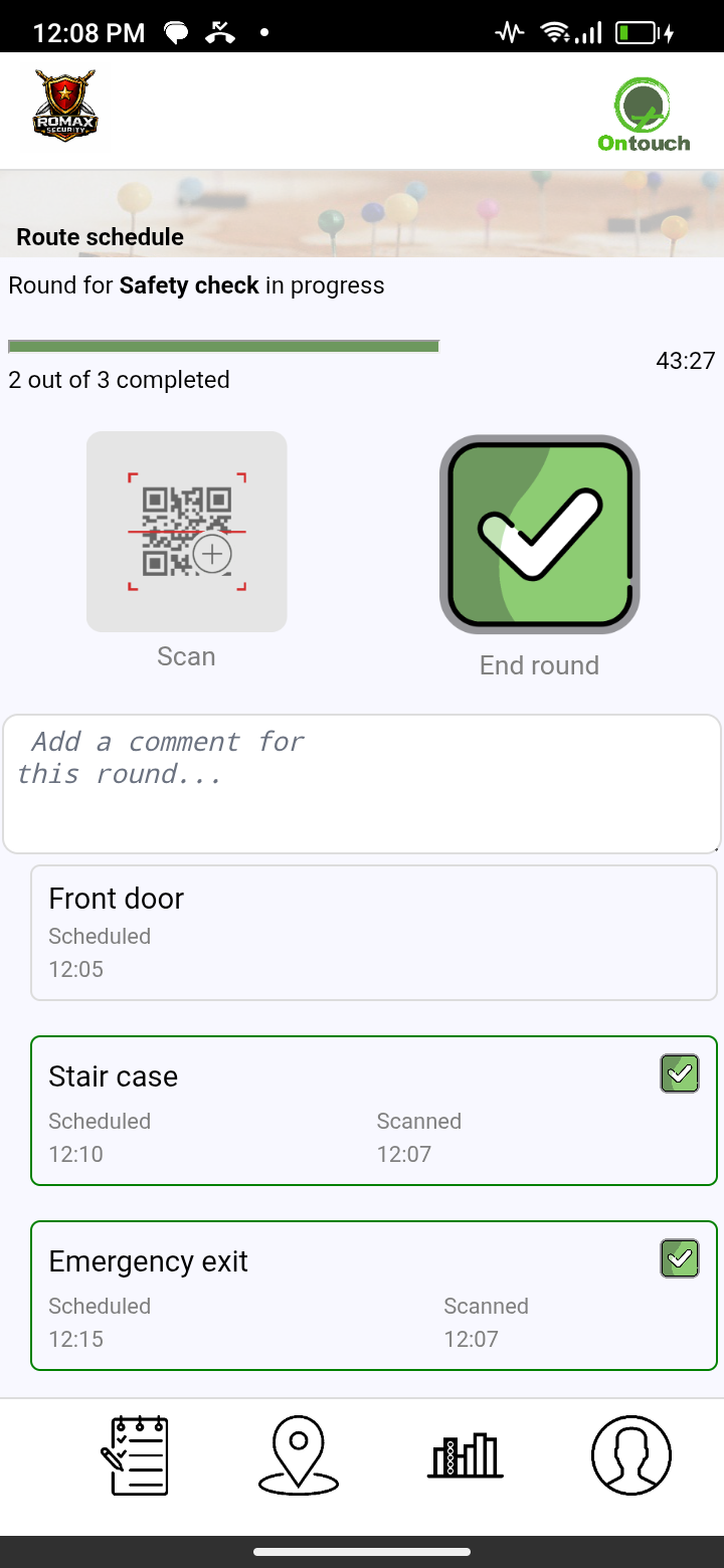 Patrols are a convenient way to ensure that you physically visit a specific site area and scan either a QR code, barcode or NFC tag at a designated point set by your company.