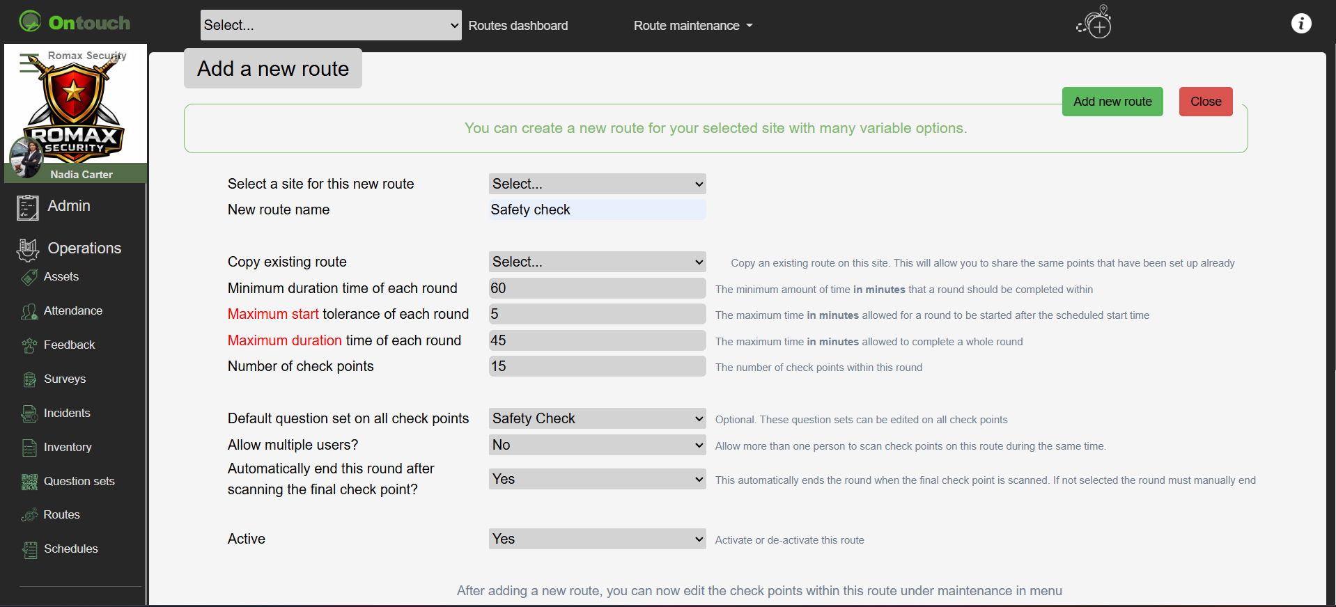 Routes are designated site points that need to be visited within a scheduled time in specific or any order with an optional multiple user function