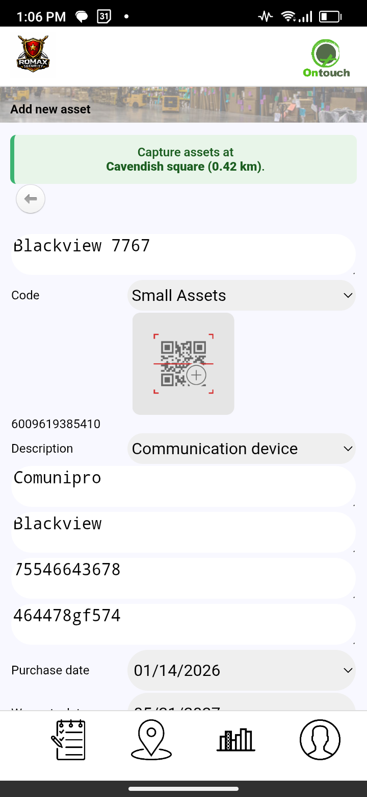 These assets may have QR codes/barcodes generated by Ontouch attached ready to scan for efficient allocation.