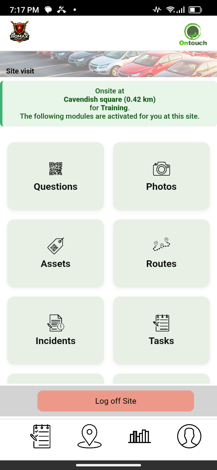 When arriving onsite you can see a list of all your company's assets assigned to that site on the Assets page.