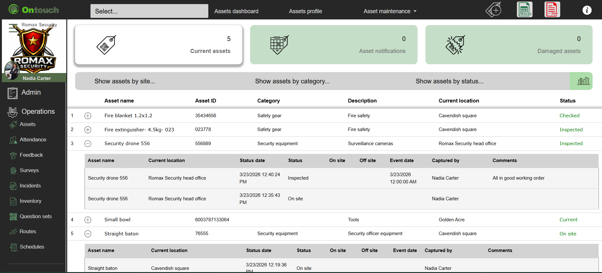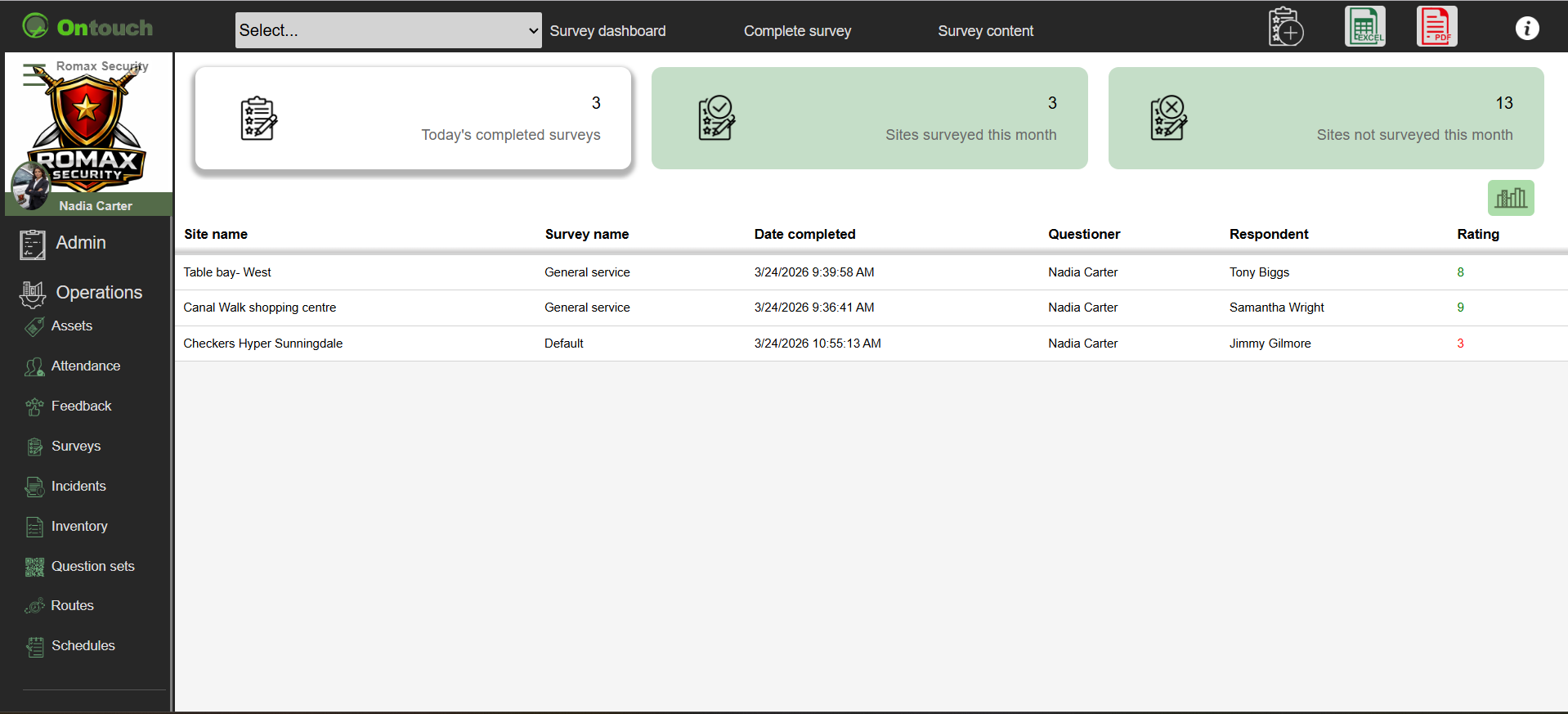 The main dashboard page shows all your activities throughout all the modules, these can be filtered for day, week or month view. Each has a link for more detailed reporting.