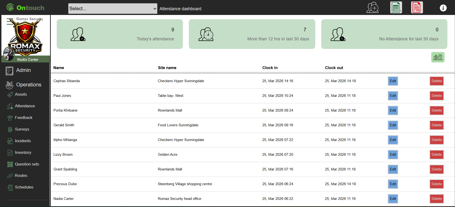 Your onsite status is displayed so you can see at a glance whether you are recorded onsite or not.