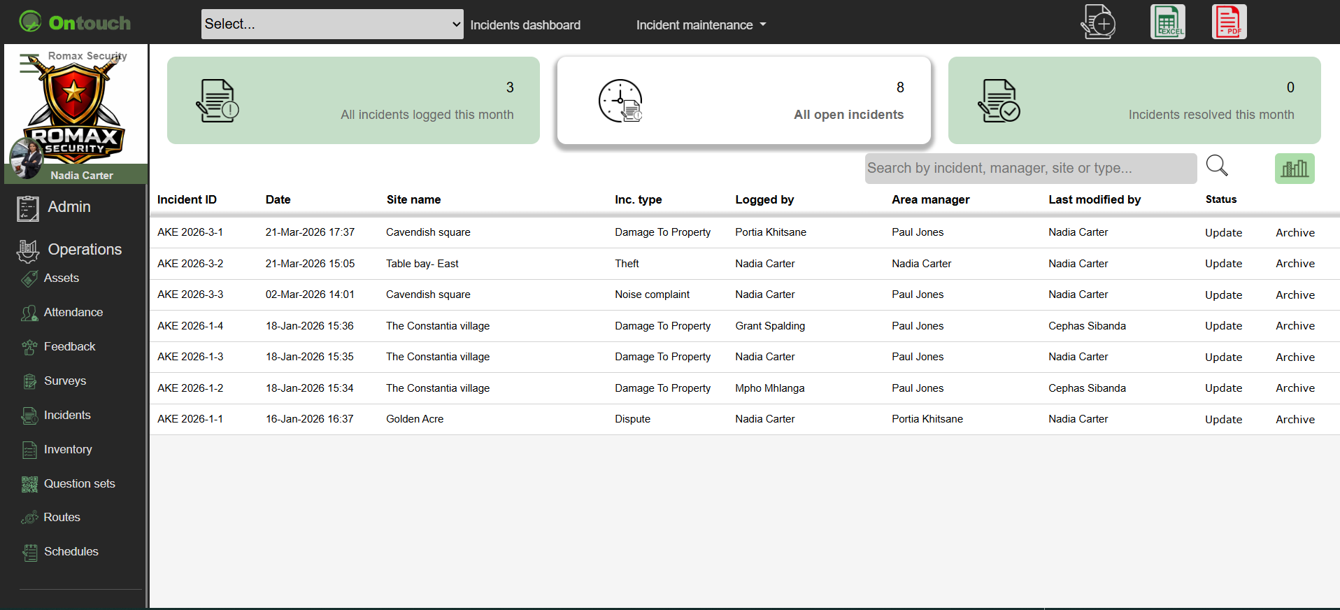Each module has its own operations dashboard where any potential problem areas are highlighted and can be rectified.