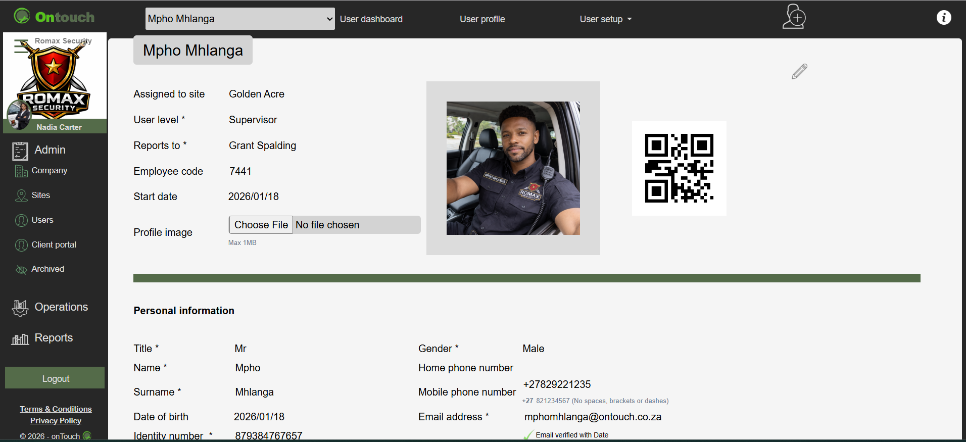 Access to your personalised profile QR code, which is used at certain points throughout the app on various modules, you will be asked to display this so it can be scanned for verification.