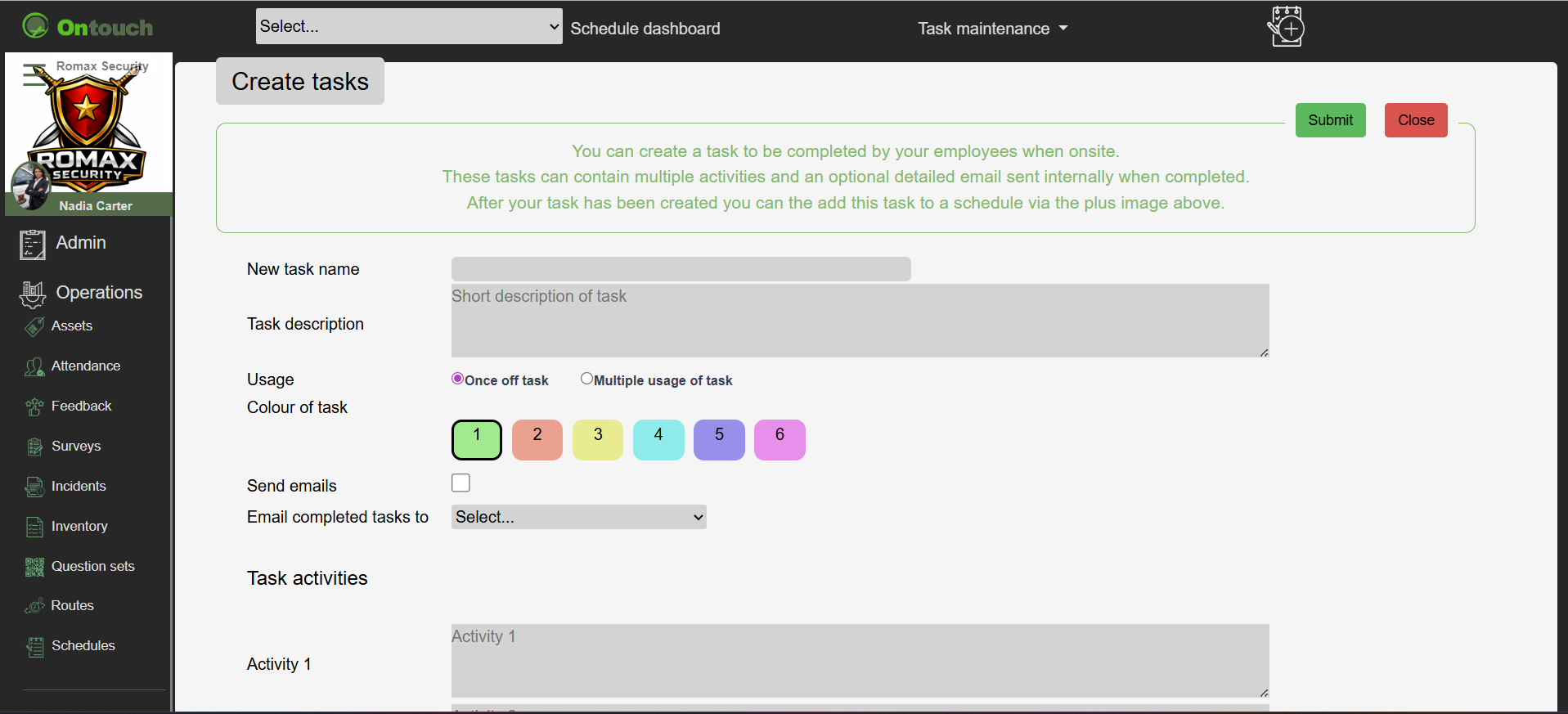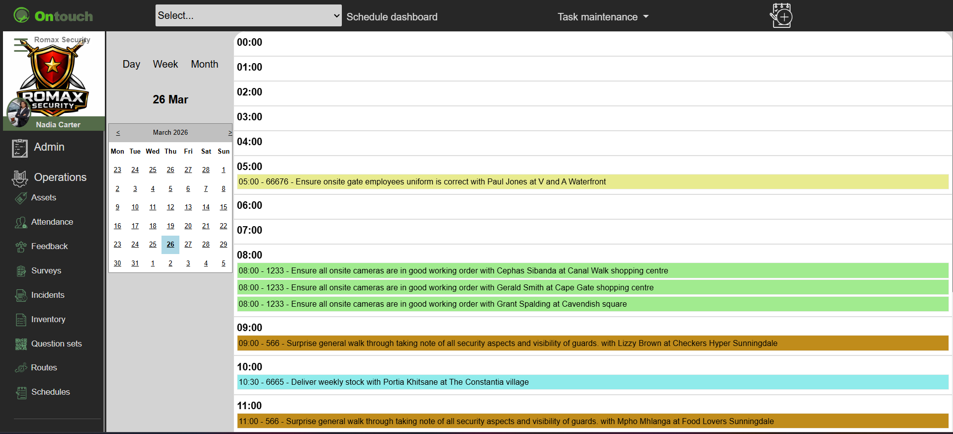 You can view and create your scheduled activities, most of these activities are loaded by your company, ensuring that you are both aware of what activities need to be completed for that day.